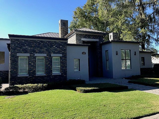 Beautifully custom built single story home offers 5 bedrooms, 4 and a half baths, two car attached garage, a two car detached garage/studio, and an amazing outdoor living and entertaining area. The interior design elements leave you wanting for nothing more, with sixteen foot soaring ceilings and endless natural light. Some of the outstanding features of this spectacular 5,605 square-foot open concept plan include lavish porcelain floors, rifted oak ceiling details, gourmet chef's kitchen with professional grade appliances, whole house generator, walls of glass for endless views of the outdoor area and much more. The impressive master suite with separate lounge area, has an enormous walk-in closet and a master bath with dual vanities and walk-in shower. A secondary master suite is located on the other side of the home with courtyard views. The two car detached garage was transformed to an air conditioned studio, header is there to reinstall a garage door if needed. A 200' deep lot allows for this courtyard style home to have plenty of room for a pool and a spacious yard. Centrally located, minutes to downtown Winter Park, Baldwin Park, East End Market, and Orlando. Zoned for the new Audubon K-8 and Winter Park High! One of a kind property, make your appointment today!