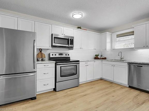 STOP THE CAR! This MOVE IN READY 2 bedroom 2 bath beauty backing onto residential homes is an affordable first step into the residential housing market. The open concept layout, fresh paint, upgraded baseboard & newly installed luxury vinyl plank flooring make this affordable cutie feel big & bright throughout. Enjoy cooking in the open concept kitchen with 4 stainless steel energy-efficient appliances, or BBQ on the rear deck when the weather permits. The upper level features a good-sized primary bedroom with double closets & warm newly installed broadloom. An updated 4 piece bathroom, & spacious second bedroom with newly installed broadloom complete the second floor. The lower level boasts a versatile office/family/games/guest suite or exercise room, a large 2 piece bathroom, a laundry area complete with washer & dryer & useful storage/hobby area. Enjoy quiet summer nights relaxing in the private, fully fenced, rear yard which is also great for keeping small children or pets safely confined. Private front porch, assigned parking & guest parking, right outside your door. Conveniently located within walking distance to several amenities including grocery, pharmacy, fast food, variety stores, schools, churches, parks, public transit and easy access to Highway 401. Low condo fees that include your personal water usage ($240/mth) plus taxes ($104/mth) make unit #78 – 1919 Trafalgar Street London, your affordable choice. Don't Delay, Come View this Beauty Today!