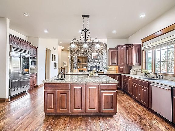 Surround yourself in the timeless elegance of this Architectural Digest worthy estate that marries French country with mountain chic elements. Home boasts a rotunda-esque foyer, arched walkways, custom niches and hand trawl wall texture coupled with wood work including built-in window shutters throughout entire home, stone accents and a semi-open floor plan. Main Floor living offers a beautiful great room with custom windows and doors providing access to the upper outdoor entertainment area, stone and wood entertainment wall featuring one of the homes fireplaces which opens into an exquisite eat-in kitchen featuring ample storage and granite counter space, large food prep island, commercial Jenn Air & Sub-Zero appliances, walk-in pantry, quaint hearth or breakfast nook, spacious walkthrough butler pantry connecting the Kitchen and Formal dining room. Other main floor features include an incredible Master Suite with a private sitting area, an ensuite with his/her vanities, large drop-in tub and an oversized shower cove, a 2ndbedroom with a private ensuite that would be perfect for a home office or an in-law suite, an oversized laundry room with plenty of counter and storage space that has easy access to the oversized garage and the shoe/coat area that can be used as a kennel space for your 4 legged pets when you leave the home. Lower level features incredible natural light, similar stone and wood accents as main floor living space, a home gym area with a private ensuite and sauna, a spacious guest suite, and a fifth bedroom with access to a shared full bath to those using the large gaming/entertainment area that has direct access to the backyard amenities. Don't miss an opportunity to own a quiet retreat located in a highly desired cul-de-sac location of Timber Canyon that is minutes from the best community amenities Castle Rock has to offer.