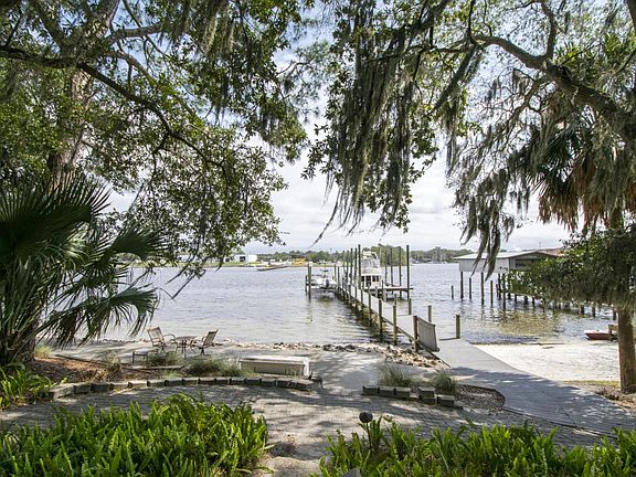 Fabulous waterfront home in The Cove that is full of upgrades inside and out. With 100ft on the water, this home is an entertainer's delight. There's a private sandy beach and a lower party deck overlooking the water. The dock, which includes 2 boat slips, was widened with 2x Trex board so that you can drive a golf cart right out to the boat. The dock is complete with a fish cleaning station including power and water. A new 10,000lb lift was just installed. There's a separate shed that houses all the boat gear and tackle. Aluminum remote gates on each side of the house keep everything secure and protected. Circular paver drive in front and extensive landscaping throughout this gorgeous property. The inside has also been extensively renovated including a custom kitchen with maple cabinets.