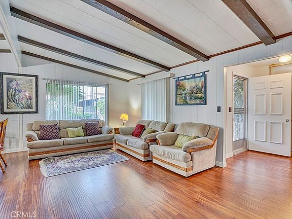 Spacious Floorplan located in the prestigious Anaheim Shores Estates. This family park has large green belts, wider streets, and cul-de-sac locations with large guest parking islands. The clubhouse amenities include a pool, spa, clubhouse with kitchen, card room, billiard room, multipurpose room, BBQ, and covered picnic area. Open Floor Plan With Vaulted Beamed Ceilings in Formal Living Room and Formal Dining Room. Built-in Hutch/China Cabinet in the Formal Dining Room. Master Bedroom with walk-in Closet. Master Bath with Roman Style Tub, Dual Sinks, and a Separate Stall Shower. Linen Closet. Updated kitchen with new sink and faucet. Updated bathrooms with both showers refinished and a new faucet. Informal Eating Area. Updated Laundry Room with Washer/Dryer (Gas) Hookups. Central Heating and A/C. Laminated wood flooring throughout. Fantastic Raised Concrete/Brick Entry and Front Covered Patio. Full-Length Carport (Three Cars) and Storage Shed. Centrally located by 91 and 5 freeway.