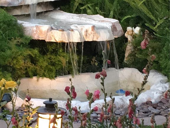 Quaintly fenced-in yardBbq areaCommunity poolBuilt-in fountainWell-maintained trees and shrubsSeveral free-standing plantsExtra-wide streets