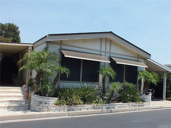 LOCATED IN THE PRESTIGIOUS MOBILE COMMUNITY "ANAHEIM SHORES ESTATES". THIS FAMILY AND PET FRIENDLY MOBILE PARK IS UNLIKE MOST OTHER FAMILY PARKS. IT HAS WIDER STREETS, LOTS OF GREEN BELTS WITH LARGE MATURE SHADE TREES, CUL-DE-SAC LOCATIONS WITH PARKING ISLANDS AND IMMACULATE GROUNDS AND CLUBHOUSE. THIS HOME HAS A UNIQUE DOUBLE DOOR ENTRY. THE KITCHEN HAS BEEN TOTALLY REMODELED WITH MAPLE CABINETRY, PULLOUT SHELVES, LAZY SUSAN, WALK-IN PANTRY AND GRANITE COUNTER TOPS. THE FORMAL DINING ROOM HAS A BUILT-IN CHINA CABINET/HUTCH. THE FORMAL LIVING ROOM IS VERY LARGE (24' WIDE). THE FAMILYROOM IS LARGE, HAS A CEILING FAN AND A MEDIA/OFFICE NOOK. THE GUEST BEDROOM HAS DIRECT ACCESS TO THE GUEST BATH WHICH ALSO OPENS INTO LAUNDRY ROOM. THE MASTER BEDROOM IS LARGE WITH A BIG WALK-IN CLOSET WITH MIRRORED WARDROBES. THE MASTER BATH HAS A ROMAN STYLE TUB AND SEPERATE STALL SHOWER. MUST SEE!