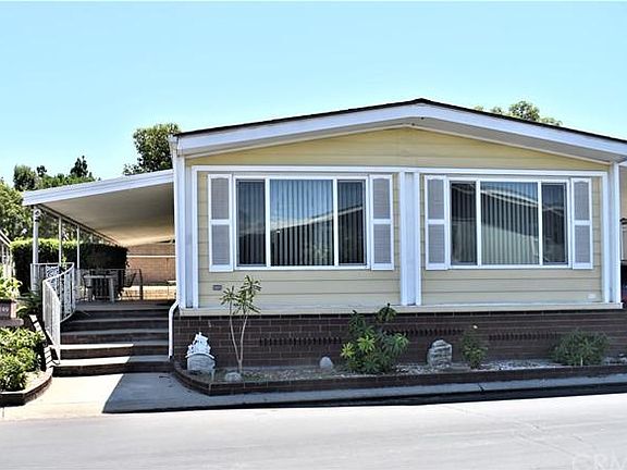 LOCATED IN THE PRESTIGIOUS FAMILY AND PET FRIENDLY MOBILE COMMUNITY "ANAHEIM SHORES ESTATES". THIS PARK IS LIKE NO OTHER. IT HAS WIDER STREETS, LOTS OF GREEN BELTS WITH TREES, SEVERAL PARKING ISLANDS, CUL-DE-SAC'S AND A METICULOUS CLUBHOUSE WITH MANY AMMENITIES SUCH AS: POOL, SPA, GAS BBQ'S, OUTSIDE COVERED EATING AREA, LARGE CLUBHOUSE WITH A CARD/GAME ROOM, BILLARD TABLES AND A RESTURANT STYLE KITCHEN. THE CLUB HOUSE CAN BE RESERVED BY THE RESIDENTS ON A "FIRST COME-FIRST SERVE" BASIS FOR MEETINGS OR SPECIAL EVENTS. THIS DOUBLE WIDE - 2 BEDROOM - 2 BATH HOME HAS AN OPEN CONCEPT FLOORPLAN AND ALL NEWER DUAL PANED WINDOWS AND PATIO SLIDER. THE DINING AREA HAS A BUILT-IN CHINA CABINET/HUTCH. THE LIVING ROOM AND DINING ROOM HAVE VAULTED BEAMED CEILINGS. THE SEPARATE FAMILYROOM HAS A SLIDER TO A LARGE RAISE COVERED PATIO. THERE IS A GROUND LEVEL COVERED PATIO AREA ALSO. THE KITCHEN IS OPEN AND HAS A BUILT-IN ROUND TABLE, LOTS OF COUNTER AND CABINET SPACE, A NEWER 5 BURNER GAS COOK TOP AND A LARGE STAINLESS STEEL SINK. THE GUEST BEDROOM IS GOOD SIZE AND HAS MIRRORED CLOSET DOORS. THE GUEST BATH HAS A DOUBLE SIZE SHOWER WITH SEATS AT BOTH ENDS. THE MASTER BEDOOM IS LARGE AND HAS A WALK-IN CLOSET WITH MIRRORED DOORS. THE MASTER BATH HAS A ROMAN STYLE SOAKING TUB AND A SEPARATE STALL SHOWER. THERE IS AN INSIDE LAUNDRY WITH STORAGE CABINETS.