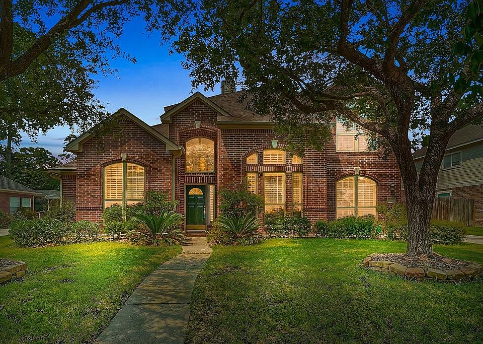 Beautiful Brick home in highly sought Imperial Oaks! A MUST SEE with plantation shutters, porcelain wood-look tiles downstairs & maple floors upstairs. 2 gas fireplaces up & down for cozy family time. Study offers built-ins w/ granite counter desk & walk- in closet featuring custom shelving and could even be used as a 5th bedroom w/ separate access to full bath. Kitchen boasts deep undermount granite sink, easy-clean glass cooktop, butcherblock counter, walkin pantry & butler pantry! Custom master bath is a spa like retreat with large soaking tub, frameless shower & elegant backlit mirror. All bedroom closets w/custom shelving units. FR wired for surround sound! BRAND NEW carpet on stairs and gameroom. Outdoors with large shade trees, large extended patio & detached 3.5 car garage, & maintenance-free sprinklers system. This home is one block from HOA shaded private park, & pool! Home was high and dry during Harvey, NO FLOODING
