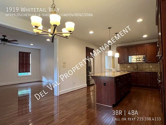 This 2700 square foot townhome home has 3 bedrooms and 3.5 bathrooms. This home is located at 1919 Whitetail Way, Blue Bell, PA 19422.