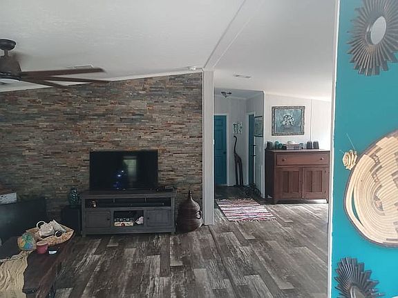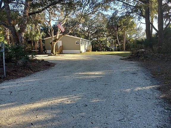 2022 two bed, two bath doublewide. Septic and well installed August of 2021. Power line ran underground. Fresh new sod. Partially cleared. Unable to see home from the road, nicely nestled in the trees. New Shell-rock circle drive. Gated. New paint, New accent stone wall ledger. Small shed in the back, all on 1.5 acres. High and dry. For Sale by Owner. No owner financing.