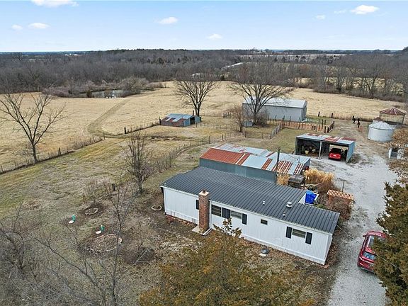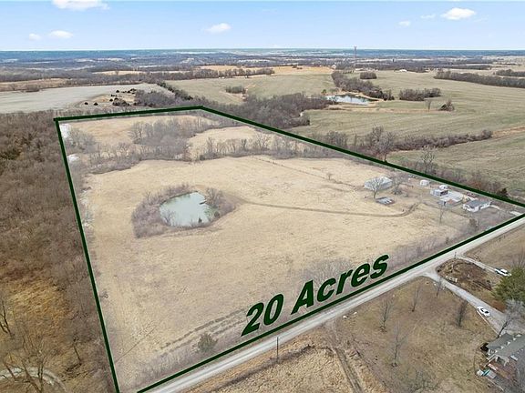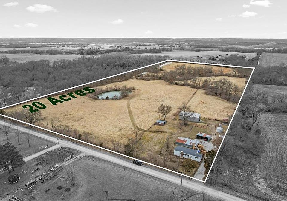 Bring your fishing poles. Here is the mini farm and playground you've been waiting for! One of the prettiest 20 acres m/l you'll find with a live running spring fed creek, deep stocked pond with lots of channel cat per owner, pasture ground with brome & clover that has produced 38 big bales of hay. Land could also be used for cropland, is fully fenced and livestock ready. Possible 2nd building site to the south. 2 entrances to the farm, 30x45 machine shed with slide door is tall enough for tractors with cabs to go in. Newer chicken house, 3 corn bins, an open loafing barn, 40x22 shed could be used as a detached garage, cattle shed for baby calves with stalls plus outside loading corrals for cattle plus a nice garden spot area. 3 bedroom mobile home has a mudroom, full bath, dining room, living room, kitchen, deck plus a patio and fishpond with waterfall. There is room for a stackable washer and dryer in the bathroom. New septic system (new concrete tank) with laterals was added approx 6-7 years ago. New water hydrant and underground water lines were installed to the mobile home. Also, new water lines were added inside the house. Metal roof is approx 10 years old, water heater 6 years, window unit 2 years old. So many possibilities here! Nice hunting ground. Beautiful building site!! Don't miss out on this one! Perfect get away property or make it your permanent homestead.