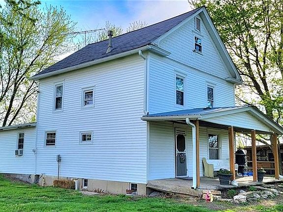 Lacygne, Ks 2 Story Colonial Farmhouse on 4.8 Acres. This home features 3 bed, 1.5 baths. Newer exterior siding and many upgrades through the years. If you want a covered front porch and a large, beautiful yard with mature shade trees, this is it. There is a fenced in pasture behind the home for your livestock. The outbuilding is newly constructed featuring a cool outdoor bar and entertainment space. Current owners have taken great pride in making this house a home. If you love old home charm, you will love this one. Home is being sold as is. PRICED TO SELL!