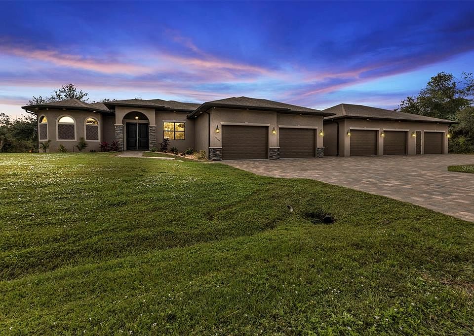 "Huge Price improvement" Gorgeous 3 Bedroom, 2 Bath Saltwater Pool Home with Detached 2000 Sq Ft Garage on Nearly an Acre in the Heart of Port Charlotte Welcome to this stunning, upgraded 3-bedroom, 2-bath saltwater pool home, situated on a spacious .98-acre lot in the highly sought-after Port Charlotte area. Boasting 2633 square feet of living space, this home offers an ideal blend of luxury, comfort, and functionality. With quick access to Veterans Blvd and I-75 via Toledo Blade Blvd, convenience is just a step away. As you approach the property, you’ll be greeted by the raised entry with impressive upgraded French entry doors. Step inside to a bright, expansive great room featuring high coffered ceilings, crown molding with rope lighting, and a custom built-in entertainment center. Perfect for entertaining, this open concept living area flows seamlessly through 12-foot sliding doors to the outdoor oasis. The heated saltwater pool and spa area invites relaxation with a spacious sitting area, a built-in summer kitchen complete with sink and custom hood, ideal for grilling and outdoor dining. The chef-inspired kitchen is a true highlight, with custom wood soft-close cabinets, high-end black stainless steel appliances, stunning granite countertops, and a generous eat-in space. A built-in desk area adds convenience, while the large walk-in pantry with custom shelving ensures ample storage for all your needs. The centrally located laundry room is not only functional but also includes extra storage and a mop sink, perfect for pet care or other uses. The guest side of the home features two large bedrooms and a beautifully designed bathroom with a custom walk-in shower. Just across from the pool access door, this layout is perfect for guests. For recreation, there’s a large game room, complete with its own refrigerator—ideal for entertaining or enjoying a game of pool. The master suite is a true retreat, offering a large walk-in closet, his and her sinks, a private water closet, and a luxurious walk-in Roman shower. Every detail has been carefully considered to provide both comfort and style. The oversized attached garage is designed for ample space around your vehicles, and the 8-foot tall doors make it perfect for larger vehicles. The 2000 sq ft detached garage is a car lover's dream, with 12-foot ceilings and a 6-inch thick slab that’s built to accommodate a car lift. With room for up to 5 cars, and an additional 15x15 air-conditioned office/man cave, this garage is perfect for business, hobbies, or storage. Outside, the backyard offers a large custom fire pit area, ideal for cozy gatherings under the stars. The home was built by the owner, a general contractor, and features numerous upgrades, including a 160mph design, impact windows and doors (no shutters needed), solid soffits, security camera system, and a brick paver driveway, pool deck, and fire pit area. The main living areas boast 12-foot ceilings, while the bedrooms are elevated with 10-foot ceilings for a spacious feel throughout. This exceptional property is the perfect combination of luxury living, high-end features, and ample space for all your vehicles, toys, and business needs. Don’t miss your chance to own this dream home—schedule your showing today! Be sure to check out the virtual tour link and the walk thru video.
