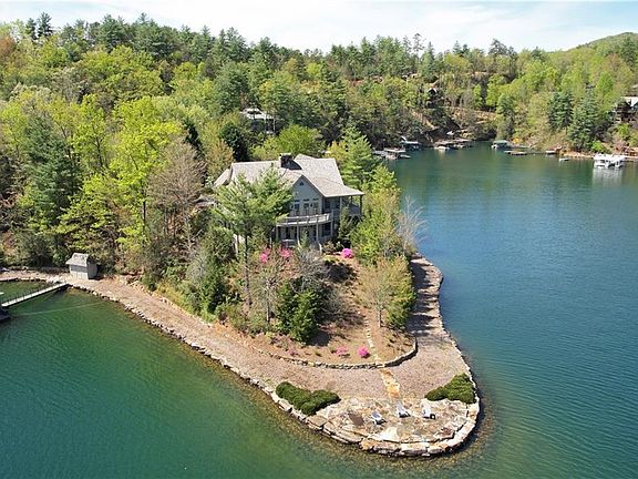 Jocassee was voted #9 by National Geographic as last great places on earth! Only 40 homes on the entire lake and the over 50,000 acres are protected in Jocassee Gorges State Park! Sensational, 'The Best on the lake'. Post & Beam 5000 sq. ft. home on the point. 5 bedroom 4.5 bath, 300 degree lake view. Level lot with driveway/walkway at waters edge all the way around property to the covered dock. There are 3000 sq. ft. of covered porches where you can sit and enjoy view of lake, mountains, or fish & swimming just off the wall. Sit on the porch and listening to the roar of Whitewater Falls less than a mile away. This is the best spot on the entire lake! Spend endless hours cruising Jocassee's crystal clear water from waterfall to waterfall. Stop and swim, ski, fish, and take in 50,000 acres of pristine state park. Enjoy a 4.5 mile view across the lake to the mountains beyond. Drive 30 minutes to Cashiers/Highlands, NC and cool casual mountain shopping and dinner.