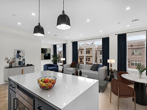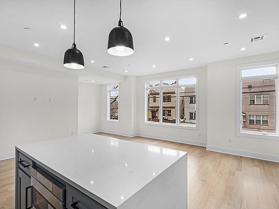 Be the first to live in this luxurious, sustainably built new construction! Beautifully designed 3 bedroom, 2 bath second floor condo unit with approximately 1,500 sq ft of living space. Large, spacious modern kitchen featuring stainless steel appliances, five burner gas range stove, quartz countertops, waterfall island and custom cabinets with loads of storage. Unit includes hardwood flooring, central heating/ac, in unit washer and dryer, oversized balcony, basement storage and 1 parking space. Spacious bedrooms with large closets and windows for plenty of natural light. Primary bedroom offers large custom walk-in closet and bathroom with a rain shower. Outside, enjoy the fully-fenced shared backyard, perfect for entertaining guests. This eco-friendly condo features a rain garden and electric car chargers. Located in the West Bergen Section of Jersey City, this condo is within walking distance to parks, light rail, public transportation, shopping, restaurants and schools. Buyer can apply for 30% tax abatement for five years. Don't miss the opportunity to make this your new home.