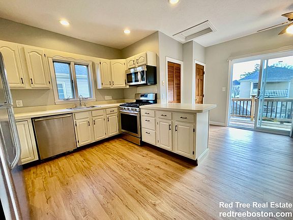 Bright and Clean 3Bed / 1Bath half duplex available now. Walk in from your private entrance and see all that this unit has to offer. A beautiful fully appliance kitchen with breakfast bar and access to your private deck, formal living room & dining room, 3 good size bedrooms, newer windows, refinished hardwood floors, washer and dryer, freshly painted, shared yard space and so much more! Owner will consider one cat or one small dog with breed & weight restrictions. The unit is within walking distance to Roslindale square and Roslindale Village commuter rail station and is just a short drive to the Arnold Arboretum and Jamaica Pond! Terms are 1 year lease, very good credit, good references and verification of income.