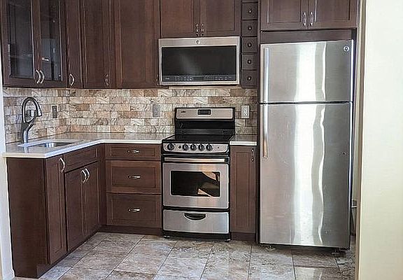 Completely Gut-Renovated Brand New Apartment with many extras! No expense spared on this high-tech kitchen which includes a modern GE Microwave and Refrigerator, Electric Stovetop, Beautiful Backsplash, Stainless steel, Cherrywood Cabinets, and recessed lighting The Living Room expands the entire length of the townhouse, with the South Facing Side encompassing the Kitchen and Dining Area providing BRIGHT flooded natural lighting On the second level are the bedrooms separated by sliding door, and bathroom in hallway Bedroom 1 can fit a King Size Bed. Bedroom 2 can also fit a king size bed or function as a recreation room, study/library. Sorry NO pets, and laundry is a short walk to the corner of the block. Heat and Hot Water Included. Tenants pay Electricity