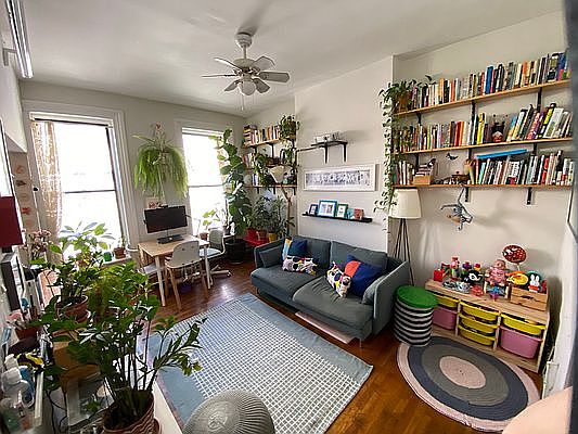 Houseplant Heaven! Sunny, airy and spacious two bedroom with character in prime North Slope available for a June 1st or 15th move-in. This unique two bedroom encompasses the entire 2nd floor of a three story brownstone walk-up with only one other apartment in the building. Ten foot ceilings throughout the space. The living room measures 15.5' x 11' with hardwood floors throughout, two large windows and a ceiling fan. Windowed, open kitchen with exposed brick, ample cabinetry and counter space. Full modern bathroom with stand-up shower. The first bedroom measures 15.5' x 11.5' with space for a king sized bed and furniture, two large windows, two closets and above closet storage . The second bedroom measures 14.5' x 8' , with one oversized window, one closet and an extra storage cabinet. All Pets Welcome! Laundromat with drop off service on the same block. Ideal location with the best of Park Slope shopping, restaurants, bars, cafes, groceries, etc. at your door step. Park Slope Food Co-op 1.5 blocks away. 4 blocks to Prospect Park, 1.5 to Union St R Subway. 1 stop to Atlantic Terminal 2,3,4,5,B,D,Q,N,R, LIRR. 10 minutes to Manhattan! Please email to schedule a showing.