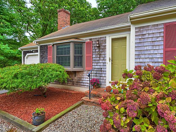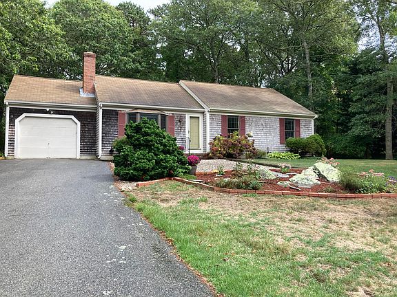 This beautifully maintained three-bedroom, two-bath ranch with an attached garage is located in the coveted Stonehenge neighborhood off Route 6A and close to beautiful bayside beaches. The open living room, dining room, and updated kitchen feature cathedral-beamed ceilings. The primary bedroom offers an ensuite bath; across the hall, you will find two additional good sized bedrooms and a full guest bath with a cathedral ceiling and skylight. The spacious living room features a lovely fireplace and a pretty box bay window that overlooks the front yard. The renovated kitchen features new cabinetry, quartz counters, tiled floors, and appliances, with the sunshine pouring in from the skylight above. The dining area offers plenty of space to gather around with family and friends. Relax in the 4-season sunroom overlooking the private and tranquil backyard with a large deck and brick patio to enjoy the outdoors. This lovely home is a must see!
