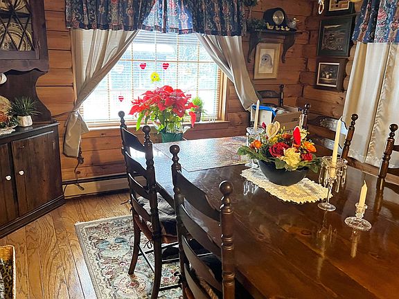1.5 story log cabin situated on 52.83 tranquil acres on a quiet dirt rd. in Hartland, VT.  Convenient Upper Valley location, while still affording total privacy with a calm, partially wooded lot, trails, and a serene 2 acre pond. 4 Bedrooms, 2 full baths. Built in 1988, this home is a well maintained 1964 sq/ft. There is a generous detached 3-car Garage with woodstove, in addition to 2 sheds and a gazebo. The kitchen features cherry cabinetry, tiled backsplash, oak flooring and an eat-in kitchen bar. The spacious and inviting living room is centered around a warm, brick fireplace with wooden mantle. This home maintains all of the interior charm of a log homes exposed wood beams and many hardwood floors. First floor bedroom and main bathroom featuring oak floors and a granite counter. ~3 miles to local restaurants and groceries. Less than 20 minutes to Hanover or Woodstock. Just minutes from I91, Dartmouth College, and Dartmouth Hitchcock Memorial Medical Center. Great first or second home with skiing close by at Killington, Pico, Sunapee or Saskadena Six.
