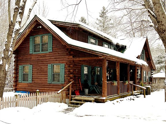 1.5 story log cabin situated on 52.83 tranquil acres on a quiet dirt rd. in Hartland, VT. Convenient Upper Valley location, while still affording total privacy with a calm, partially wooded lot, trails, and a serene 2 acre pond. 4 Bedrooms, 2 full baths. Built in 1988, this home is a well maintained 1964 sq/ft. There is a generous detached 3-car Garage with woodstove, in addition to 2 sheds and a gazebo. The kitchen features cherry cabinetry, tiled backsplash, oak flooring and an eat-in kitchen bar. The spacious and inviting living room is centered around a warm, brick fireplace with wooden mantle. This home maintains all of the interior charm of a log homes exposed wood beams and many hardwood floors. First floor bedroom and main bathroom featuring oak floors and a granite counter. ~3 miles to local restaurants and groceries. Less than 20 minutes to Hanover or Woodstock. Just minutes from I91, Dartmouth College, and Dartmouth Hitchcock Memorial Medical Center. Great first or second home with skiing close by at Killington, Pico, Sunapee or Saskadena Six.