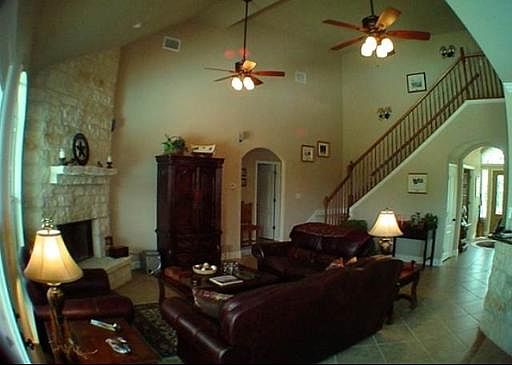 High on the hill at the end of a cul-de-sac w/views!Deer-resistant landscpng w/trees welcomes you to this Tx.Hill Ctry.home.Tile w/dec.tile accents adorns floors in entry,dining,kit,brk,famrm,study,all baths,hallway,& bksplash.Granite ctrs incl.isl. & brkfst bar,br.nickel faucet w/deep undrmt.st.sink,stone accent wall,cr.moldings, vaulted ceils,arches,niche,iron liting & bath faucets,granite ctrs.in baths w/dec.tile accents in showers & tubs,flagstone around pool/spa,extra parking space,privacy all around!!