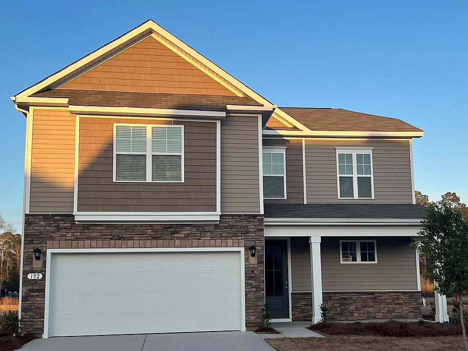 This popular plan brings functionality and style together! Stone accents, inviting front porch, and tall entry door with glass. Once inside, wide plank laminate wood flooring creates an inviting space. The large kitchen boasts granite countertops, island, stainless Whirlpool appliances, a pantry. Owner's bedroom and full bathroom with large separate vanities, 5' shower, and linen closet for even more storage on the first floor! This home is located in a new natural gas community in Carolina Forest! The Parks of Carolina Forest is a picturesque setting of ponds, an amazing amenity center, and park of the majestic "Ten Oaks" with a walking trail to get to the Carolina Forest library. *Photos are of a similar Harbor Oak floorplan. (Home and community information, including pricing, included features, terms, availability and amenities, are subject to change prior to sale at any time without notice or obligation. Square footages are approximate. Pictures, photographs, colors, features, and sizes are for illustration purposes only and will vary from the homes as built. Equal housing opportunity builder.)