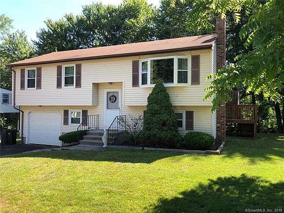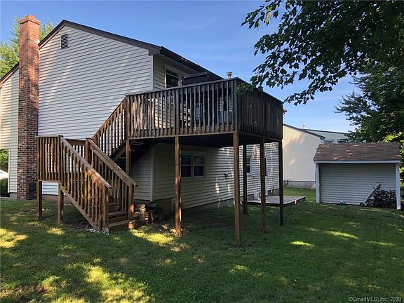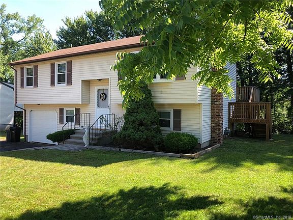 Clean, well-cared for home ready for new owners. Vaulted ceiling in LR and flooring has been replaced and room was freshly painted. Family Room in Lower level is setup for 3rd Bedroom use. Great raised deck off Kitchen/DR combo is good sized and ready for barbecuing plus there is a serenity deck near woods and a 3rd deck on lawn area. Half bath in lower level is roughed-in ready for finishing. Laundry room has it's own separate room. Real wood stove in lower level supplements the affordable Natural Gas heating the home and will keep that space plus part of upstairs toasty warm. Neighborhood of well cared for homes with easy access for Rts 15,I91N/S, I691E/W, essentially a commuter's dream. Come take a look