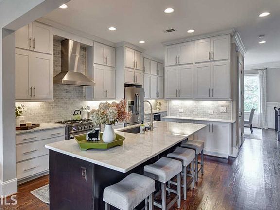 Gorgeous Brick Townhome! Coffered Ceilings, Designer Lighting, and Custom Tilework converge at this impressive home in the heart of Old Fourth Ward. An Open Main Floorplan welcomes you. Hardwood Floors from a Spacious Family Room with Fireplace and Coffered Ceiling into a Bright, Central Kitchen with Marble Countertops, Professional-Grade Stainless Steel Appliances, and Island Breakfast Bar. A Formal Dining Room with Judges Paneling and Butler's Pantry completes the main level. Unwind in the Oversized Master Suite with Sitting Room, Private Balcony, Custom Walk-In Closet, and Spa-Style Bathroom with Dual Vanity, Soaking Tub, and Frameless Glass Shower. Two Additional Bedrooms deliver their own Private Bathroom. Enjoy the outdoors from a Covered Patio with Skyline Views overlooking the Neighborhood Pool. A Two-Car Garage and Two Dedicated Guest Parking Spaces welcome you home! STEPS from Historic Fourth Ward Park, The BeltLine, Ponce City Market, Freedom Park Trail, Shops, Restaurants, and Midtown Nightlife.