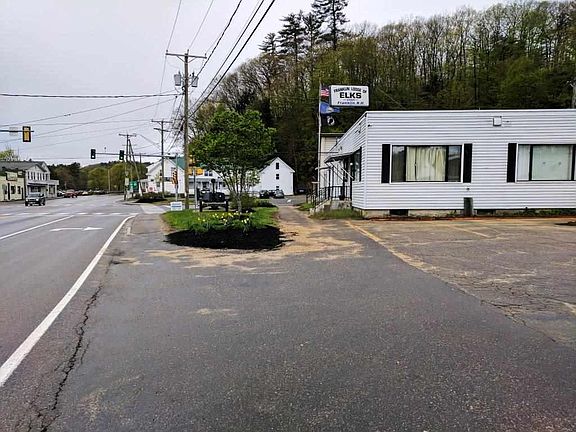 Franklin, NH - 03235 Prime city location! Outstanding visibility at this level 0 .70 corner lot with 330+- feet of road frontage and 45 +/- parking spaces which is accessible from both highly traveled Routes 3/11 and West Bow Street/NH Route 127.. Zoned B1 Low-Density Business and Commercial, the location has a 16,000+ daily traffic count and would be ideally suited for a possible drive-through operation. The current building has 5,328+- square feet on two levels with large open gathering spaces and is handicap accessible. The main level includes a large function room with seating area for 200+-, a commercial sized kitchen and 2 bathrooms. The lower level is a lounge with a full length bar, 2 meeting rooms, 2 offices and 2 bathrooms.