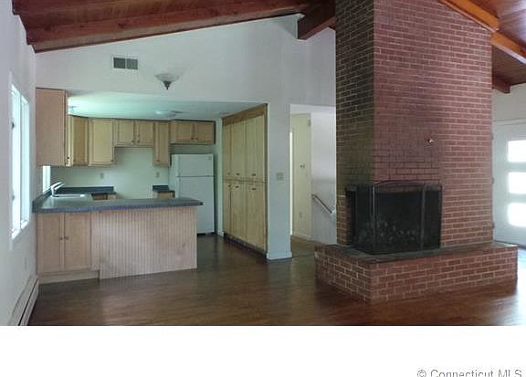 Contemporary 4 Bedroom Ranch. Open Floor Plan, Walkout Finished Lower Level, Oak Floors. Set Back in the Woods. Private Quiet Location. Minutes to UCONN. Walk to Mansfield Middle School. Open Kitchen/Dining/ Living Room with Cathedral Ceiling and Fireplace.