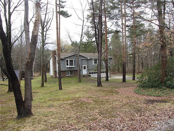 Looking for secluded country living with 2.38 acres and a pond? This 3 bedroom, 2 full bath with attached 2 car garage is ready and waiting for you!! Tucked away on a quiet road in the town of Bennington with Alden schools and located in Wyoming county with lower taxes ! 3 good sized bedrooms, lower level has large room with wood fireplace with new tile surround. Solid 6 panel doors. All appliances stay! New flooring in kitchen and freshly painted throughout. Rare find with land...several outbuildings for your favorite hobby or small animals. Make it your own....don't wait !