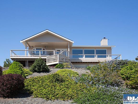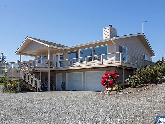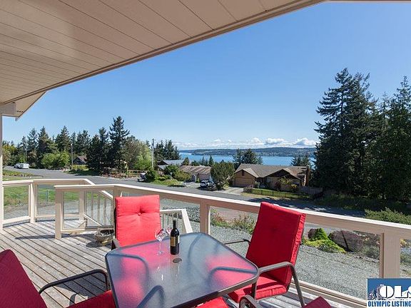 Panoramic water view home with recent upgrades offers so much! New Quartz counters in kitchen were installed in March 2015, all cabinets in kitchen and 2 bathrooms refinished and varnished in Dec 2015, plus new exterior paint in Aug 2016. Vaulted ceilings, low window sills to take in the view, Lopi wood burning stove in great room, new top down/bottom up window treatments on front windows, fenced in raised garden area off kitchen, efficient heat pump plus large garage, partially finished basement and more!