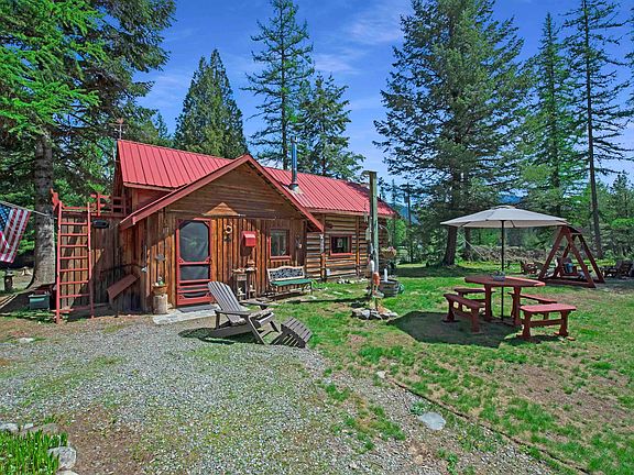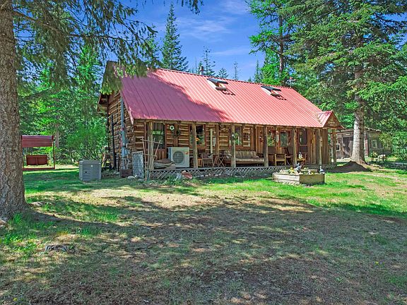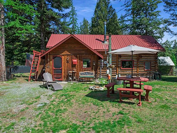 BACK UP OFFERS ACCEPTED... CASH or Loan, RECENT FHA APPRAISAL with no repairs, transferable with same bank for quick close!!!! Septic Inspection and Water test done!! A tranquil sanctuary nestled amidst thousands of acres of USFS land. Charming log cabin sits on a leveled 5-acre lot with breathtaking southern exposure. Situated in close to Meadow Creek and Moyie River around the corner, This cabin features an inviting porch that offers serene surroundings, picturesque views of Goat Mountain. The entire 5-acre property is enclosed by a 6-foot No-Climb fence for your animals, two solar powered electric gates for convenient entry and exit. The property has a fenced garden, workshop, 10 cord woodshed, pump house, and ample storage options. A carport/barn with a lean-to for extra storage space. Equipped with a whole house auto-start propane gas generator, Fully Remodeled in 2022, New Lifetime Waterproof flooring, Mitsubishi Mini-split (12 warranty) & On-demand hot water heater (15 year warranty), 4 acres of huckleberries, Turn-key convenience, Move-in Ready!!! StarLink is available.