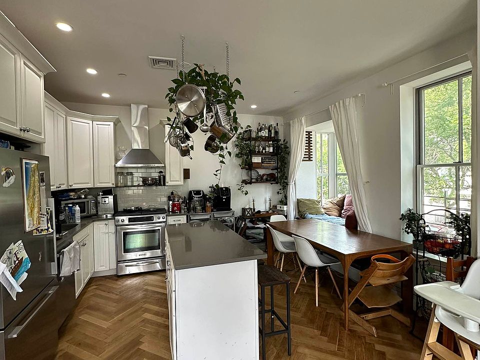 Please check open house times, they can change. Gorgeous large 3 bedroom apartment High ceilings with gorgeous light Private entrance Parking in front of unit Bay window in the kitchen. Perfect for a kitchen dinette space. Large kitchen island Working fireplace Large living room Amazing closet space in every room 1 king size bedroom 2 large queen size bedrooms Washer and dryer in unit Dishwasher Central AC and heat Ideal 3 bedroom apartment with everything you need.