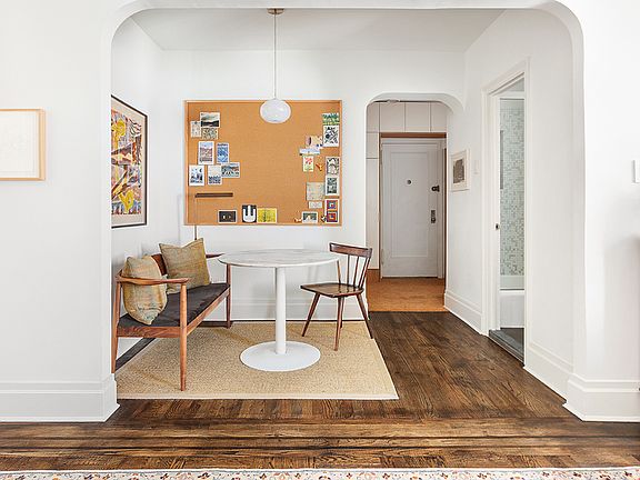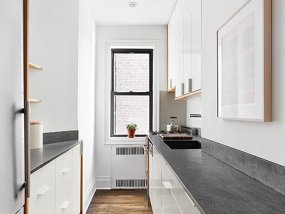 Unique, pre-war jr. one bedroom with modern finishes designed by owner/architect. Step into this high floor apartment with handsome, custom cabinetry for all of your storage needs. The modern kitchen has pietra cardosa countertop, a Bertazzoni stove and Liebherr refrigerator and custom elm veneer cabinets. A charming dining area Is positioned near the kitchen and separate from the living room. The bedroom has additional custom cabinets and has a western exposure with views of beautiful sunsets. The handy home office has custom built-in cabinets and a built-in desk. This space could also be used as a nursery and could even accommodate a twin sized bed. The renovated bathroom has a window and is well-appointed within the apartment. >This well maintained building has great financials, a lovely common backyard with a garden, table, and grill. Additionally, the building has a skylight on the top floor that allows light to pour in through the building into the classic lobby. There are updated HE washer and driers in the basement, a bike room and a storage space that's deeded to this apartment. Pets are welcome in this well-appointed, 30 unit pre-war building. Located a few blocks from Prospect Park, Der Pioneer, Wheated, The Windsor Terrace Co-op, Werkstatt, AM Thai Bistro, and more! The apartment is a short distance to the new Kensington dog park, Greenwood Playground, Cortelyou Road, and the restaurants and shops on Hamilton Ave. Catch the B/Q at Church Ave and the F/G at Fort Hamilton Parkway. This apartment has a lot to offer!