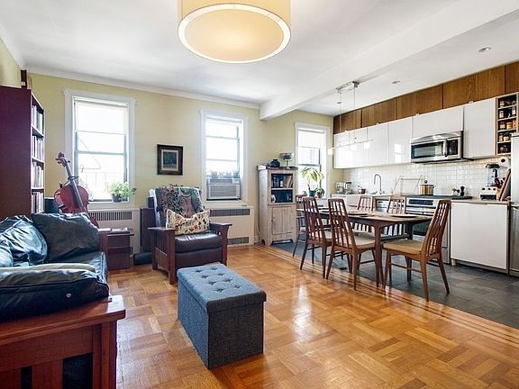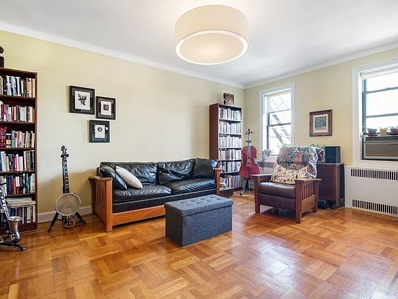 About the home: Located on the top floor of a small, well run pre-war co-op, this home enjoys sweeping views that include Prospect Park, the World Trade Tower, Greenwood Cemetery, and expansive blue skies. Light fills the apartment all day long through windows covering north and western exposures. Enjoy entertaining in your large, open-concept kitchen and living area, with light quartz counters, white glass cabinets, and well-maintained stainless steel appliances (refrigerator, stove and dishwasher). You and your guests will enjoy the renovated, windowed bathroom with its full-size tub and floor to ceiling mosaic tiles. When it's time for bed, relax in your extra large bedroom that can be converted into 2 bedrooms. And there's more: two bike racks convey with this apartment for only $5 per month per unit. Plus - the co-op is Pet Friendly! About the co-op and building: 192 E.8th St is a very well-run cooperative focused on maintaining the building and improving common areas. The following projects were undertaken recently- most with no assessments to shareholders! - Landscaped backyard with flower beds, large patio with new outdoor furniture, and a grill for entertaining - The roof was completely replaced, with a new 30 year warranty in place. - Substantively all asbestos has been abated in the building - Refresh of hallways and stairwells to commence in October. - Updates to building facade - Maintenance on the bluestone walkway - Extensive landscaping with seasonal flower garden The neighborhood: This home is steps from the burgeoning restaurant scene on Church Avenue (e.g., Der Pioneer, Hinterlands, Wheated, La Loba Cantina, etc.), the Windsor Terrace Food Co-Op, Prospect Park, and Ditmas Park's best dining and entertainment. The F/G trains and the Q/B trains are both an easy walk away.