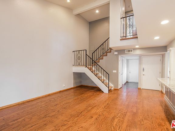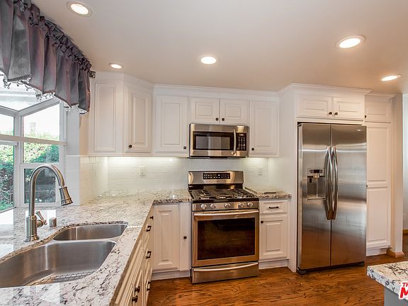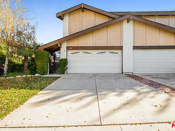 This Thousand Oaks townhome features stainless steel appliances, a kitchen island breakfast bar, mirrored closet doors in the master suite, a covered patio in the private backyard, and a two-car garage.