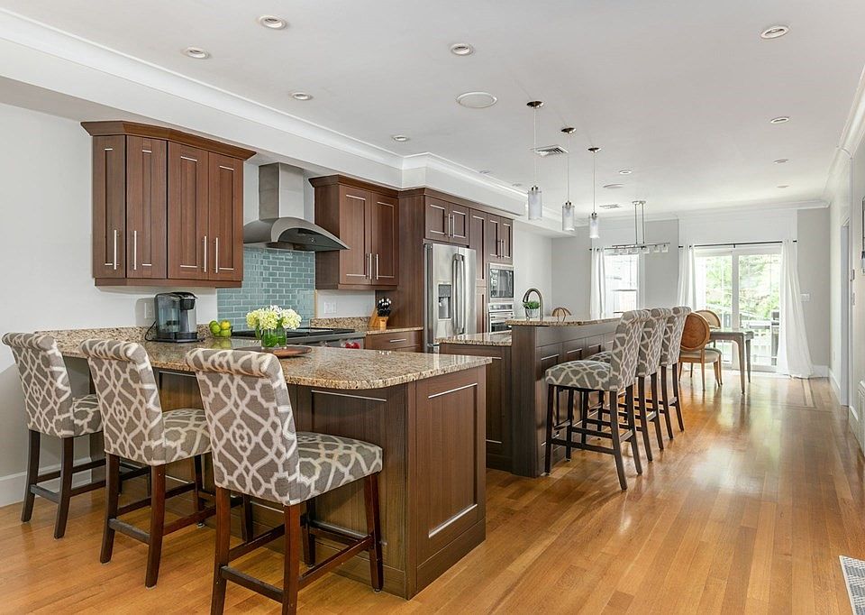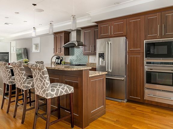 Custom built; stunning City Point Tri-Level Penthouse located in a highly sought-after South Boston location. Just a few blocks from beach and a short walk to all the attractive options along East Broadway. Offering 2+ bedrooms, 2 1/2 baths, and 2100+-SqFt of living space with four private outdoor spaces and deeded backyard with lawn and plantings. The custom kitchen is complemented by all Wolf appliances, 2 islands, separate dining area open to a spacious fireplaced living room with Juliet balcony and custom millwork. The 3rd level has two large bedrooms including the Primary Suite with a built in TV cabinet, a 10ft walk-in closet and En-suite bath with heated floor and Kohler Shower System and outdoor private deck. Two linen closets and a laundry closet finish out the floor. The 4th floor Penthouse consists of built-in bar and gas fireplace with front and rear roof decks. Home all hard-wired Bose/Sonos Sound System including outdoor spaces. Only 2 units with a Single-Family feel.
