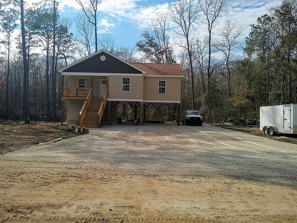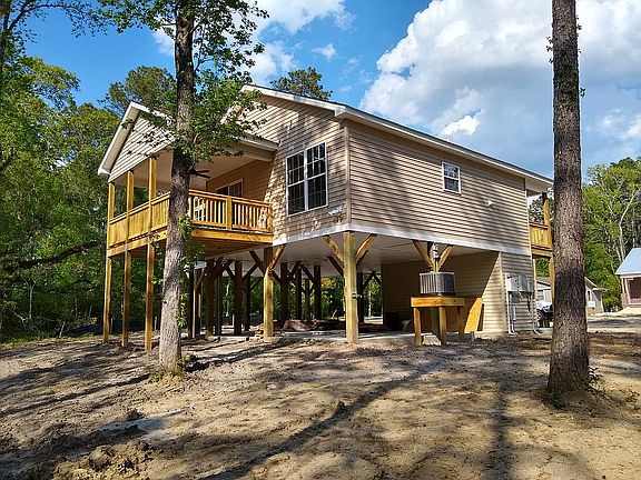 Looking for that special, superior-quality home surrounded by peace and quiet, with plenty of room for your RV or boat, and with no HOAs to deal with. Then this is the home for you. This raised home has plenty of privacy as it backs up to protected wetlands. The view from the deck makes you feel like you're living in a treehouse. Listen to the birds sing and the trees rustle in the wind. This home has 3 bedrooms and 2 full baths on a half-acre lot with public water and sewer. Secluded, yet just off of highway 544 for easy accessibility to everything you need. Large open floorplan with cathedral ceiling and hardwood flooring throughout with an expansive view of trees out the back of the home. Both bathrooms have tile floors and granite vanity tops. The master bedroom has a tray ceiling with walk-in closet and ensuite bathroom. This is not a track-built home. The quality of construction and extras shine through. Trex decking, 10' ceiling height under the home to park your truck or boat, exterior 30-amp service outlet, and room to enclose and build a huge shop, extra bedrooms, or in-law suite. Price $234,900.