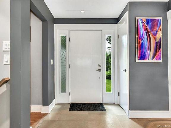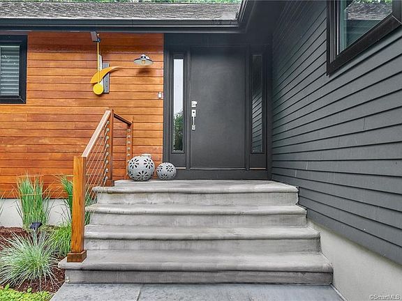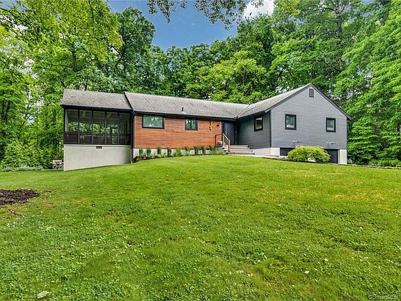 This house positively gleams. An exceptional contemporary ranch in superlative condition featuring high-end finishes, a modern open floor plan and remarkable privacy, this is a home you'll be proud to come home to. The Main Floor features a Chef's kitchen with stainless Viking appliances, hardwood floors throughout and the finest white Carrera marble counters. Enjoy the outdoors from the high-ceilinged 3-season porch or cozy up by the living room fireplace to enjoy the expansive views of the property from the large window walls. The Master Suite includes two walk-in closets and a stunningly modern master bath with frameless glass shower. The second and third bedrooms share another beautiful modern bath. The lower level includes a large family room with ground level views, ample play and workout space with room for a gym and pool table, another fireplace and the fourth bedroom with full bathroom. This home is move-in ready. Located opposite the Oak Hills Golf course and near the Fox Run School, this neighborhood is both green and convenient to both the Merritt and I-95, post road shopping options and the new SONO mall.