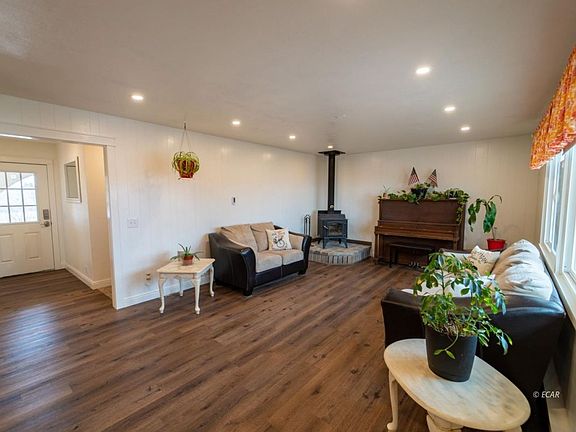 Located at the end of the street with a beautiful view of the Ruby Mountains & many trees, this home on 5.12 acres is a rare find with so much to offer a buyer! Step into this spacious home, & you will find all new flooring with new carpet & vinyl plank flooring throughout the home just installed within the last couple of weeks! Fresh paint, recessed lighting, updated bathrooms, a large kitchen, & plenty of storage! Downstairs features a projector, screen, & wired in surround sound (receiver doesn't stay). Home has a wood stove upstairs & downstairs which includes an air circulation system. Home has a large pantry, spacious kitchen, open floor plan, & 6 bedrooms and 3 bathrooms. Home has an attached 520 sq ft attached garage & a 1200 sq ft detached shop! Outdoors features a root cellar, a large greenhouse, chicken coop, garden shed, fencing, sprinkler system & drip system for trees & garden. The shop includes a livable space w/ A/C, heating, water heater, & a separate bathroom, that could be used for a home office or a workout room, but is currently plumbed & used as a nail/hair salon. (Salon fixtures, sink, cabinets, & equipment do not stay) Home can still show for backup offers.