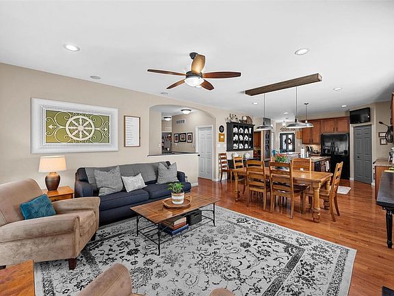 When we say ALL of the bells and whistles, we mean ALL of the bells and whistles! Welcome to your entertainers DREAM home! Not a detail was missed in this 4 bed/3 full bath ranch home. The exterior shines with its NEWER roof (2024), OVERSIZED garage, & OVERSIZED driveway! Big truck? This one is for you! The HVAC is also new (2024). The main level boasts 9 ft ceilings, and a custom kitchen. Be sure to check out the massive main floor laundry room and built in desk area before heading out to relax on your deck which overlooks a beautiful treeline. 3 bedrooms including the master suite complete the upper level. Down in the finished lower level, you will find your BAR, a living area, full gym, 3rd full bath, and 4th bedroom. This walks out to your patio and flat oasis of a backyard. Turn on the custom surround sound either up or downstairs, and RELAX! You have just found yourself the PERFECT place to call HOME! Don't miss it. SHOWINGS BEGIN 1-3 at OPEN HOUSE 10/13!