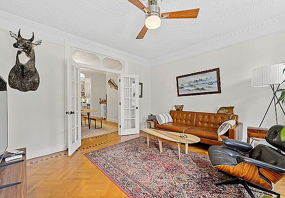 -No pets- Breathtakingly rare, one-of-a-kind Bright & Spacious top-floor duplex Condo features 3 bedrooms and 2 baths. Or use as a 2 Bed 2 bath. Recently remodeled with lots of upgrades and a third floor off the rear end of the building leading up to a roof deck! This second floor Condo provides space to allow for decorating flexibility as been restored leaving it's pre-war crown molding, gorgeous hardwood flooring and ceiling features in impeccable condition. The Condo has recently expanded and features generously-proportioned living, dining, and kitchen areas each serving its own purpose. The main level has a large living room area with an office size or full size bedroom, an oversized room off of the dining room that could be occupied as a gym, play room, office, or even another den and a separate eat-in-kitchen with stainless steel appliances including a farm table sink. The living room has the option to use as a King size bedroom and or use the dining room as a living room. The options are endless here when it comes to your furniture and each room seamlessly transitions in the one another equally. Off the kitchen, a rear stairwell leads to the expansive owner's suite. It encompasses the entire third floor and is well-appointed with 3 large windows, a seating area, and a large en-suite bathroom. There is ample closet space and an abundance of storage closets to accommodate enough storage for two. The spa-inspired primary bathroom has dual sinks, an impressive walk-in stone framed shower and features two stairways that lead down through the kitchen and up the roof deck. The roof is a wonderful space for outdoor entertaining with various seating areas and private access directly from the rear end of the kitchen and upstairs bedroom. The inside is just waiting for you to add your own style and purpose to this amazing space and If you are fortunate enough to acquire this impressive luxury property in the heart of Greenpoint, you can look forward to a calming and cozy home. A property that is a blank canvas, and can readily be completed as your personal high-end Residence. Just steps from all of greenpoints finest restaurants, cafes, and more off Manhattan and Franklin Avenues. -5 minute walk down lovely tree-lined streets to the G train and The Ferry @ India street Text or call for an appointment today!