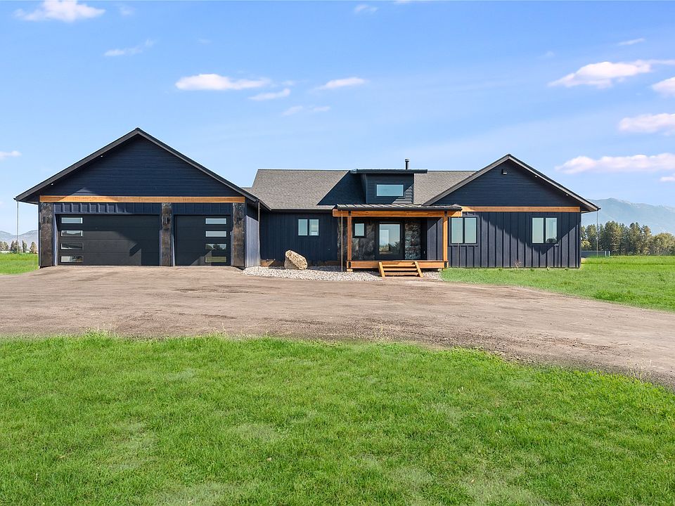 Nestled at 192 Glacier Flats Road, Kalispell, Montana, this newly constructed single-family residence offers a unique opportunity to embrace the tranquility of Montana living. This home features many unique finishes from the oxidized steel trimming the exterior. A butler's pantry compliments the beautiful chef's kitchen featuring an 8-burner gas stove with views of Whitefish Mountain, the majestic peaks of Glacier Park and the simple old red barn with the Swan range as a backdrop. With 2300 square feet of living area, the residence provides a comfortable layout for daily living. This property features a 3-car garage, providing protected parking and additional storage. Encompassing a generous 5-acre lot area, the property offers ample space for outdoor activities and enjoyment of the surrounding landscape. This one-story home is ready to welcome you with its promise of comfort and potential. Power has been brought over to a level pad that is ready to build your dream shop or barn.