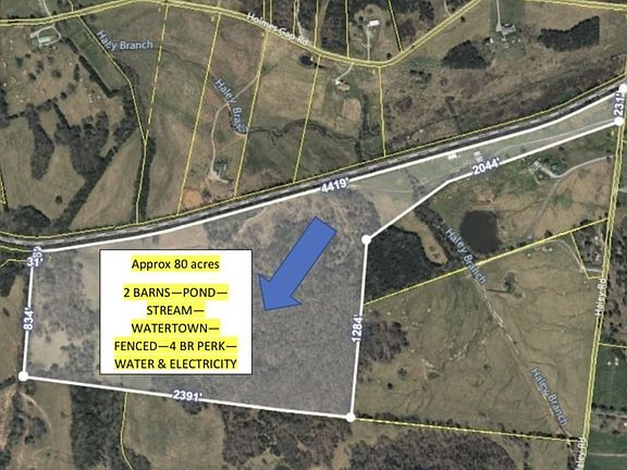 REDUCED PRICE! ! 80 acres of great farm land--mix of woods & cleared farm land; Beautiful land to build your dream home--already perked for 4 bedroom; has pond & stream; completely fenced; Has city water & tap at road; 2 Barns-refurbished barn has electricity; Hay barn is 10 years old; Property has had cattle on it--cattle has been removed; 2 Miles to Watertown High School; Minutes to I-40 & Nashville International Airport; Click "ROOFTOP" button under the picture to view video of property.