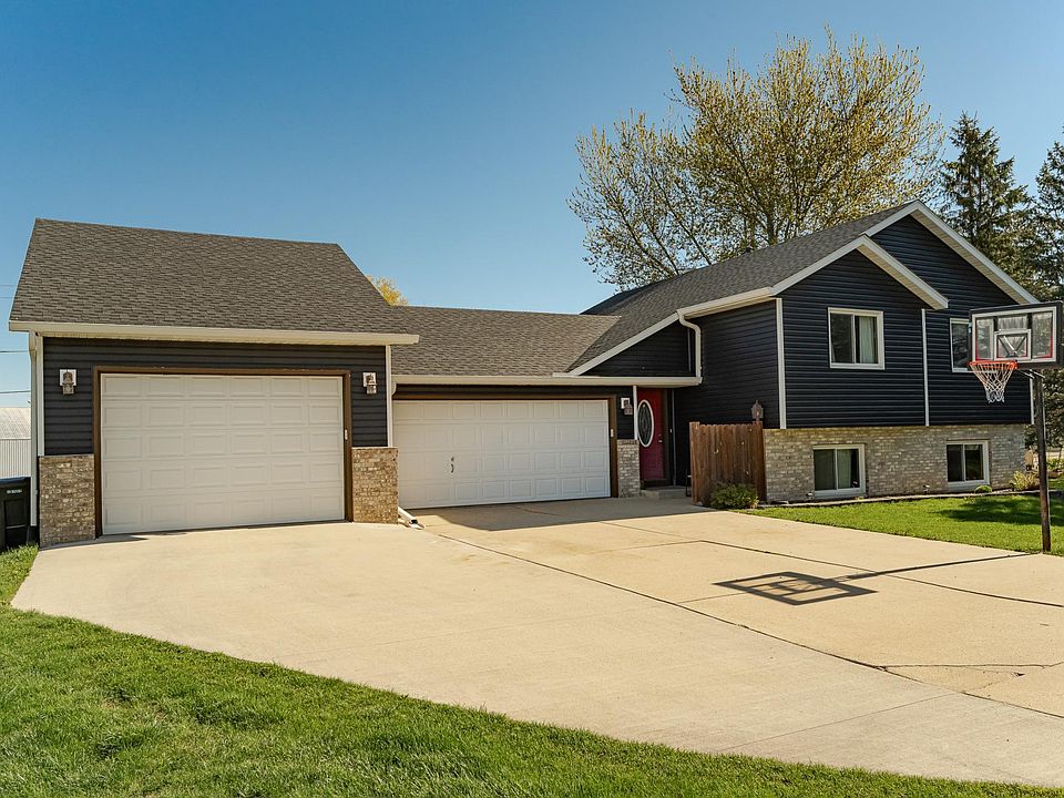 Very well taken care of 4 bedroom, 2 bath split level home with a walkout and 3 car heated garage. Main level offers an open floor plan, spacious kitchen with breakfast bar, vaulted ceilings and master bedroom with access to full bath. Huge lower level family room with a walkout to a large, fenced yard. Located in a cul de sac. Many recent updates include central air, water heater, furnace, roof and siding.