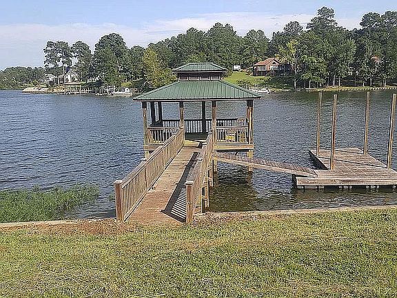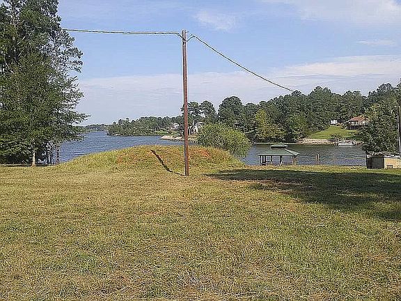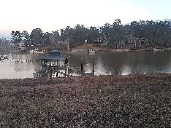 .82 Acres on deep water. High, cleared and graded lot which could accommodate a house with a basement. Big view of lake and protected by cove. 1000sq ft dock with fixed pier and floating dock with room for a boat lift. Architectural block sea-wall. Nice concrete boat ramp, which are no longer build permitted on lake. Power present. City water present. Well present. Previously had a septic tank. Large pile of clean dirt remains if needed for construction of house. Lot and view are beautiful and ready for the house of your dreams.
