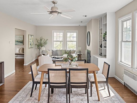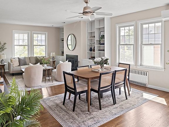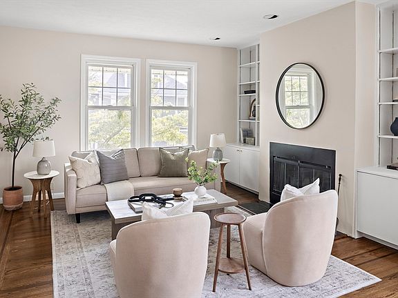 Make Cambridge your home in this 3-bed, 2-bath jewel in Strawberry Hill, near picturesque Fresh Pond. Spanning the top two floors, the unit offers a lovely combination of open and discrete areas, with the perfect blend of flexibility and privacy. High ceilings create an airy and spacious atmosphere, in which the living room flows seamlessly into the dining area. A wood-burning fireplace framed by built-in bookshelves adds warmth and character. The layout of the kitchen is excellent, with tons of cabinets as well as separate functional areas including a breakfast bar and laundry. Beyond the kitchen, the sunny enclosed porch offers options for an in-home office, exercise studio, or playroom. Two large bedrooms flank the first-floor full bathroom. The primary suite upstairs features skylights that bathe the bedroom in natural light, a nook for reading, and an en-suite full bathroom. Garage plus additional off-street parking; basement storage. A beloved home, ready for the next generation!