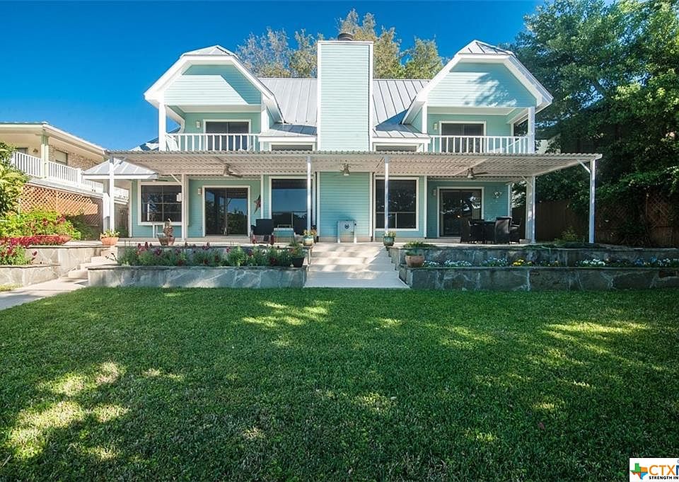 Fabulous location on Lake McQueeney near "the big part" of the lake. This home is ready for waterfront living with a fun lake vibe in mind! Updated kitchen in the heart of the home with blue/green glass backsplash, turquoise Big Chill fridge and dishwasher, updated wood cabinets, breakfast room looking at the lake plus a separate dining room. Cork flooring, beachy colors throughout, plantation shutters, huge rock fireplace great during the quiet winter months, master down with large master bath, double sinks, tub and separate shower, walk in closet. Upstairs has 3 additional large bedrooms, with a shared bath, plus upstairs den that overlooks the downstairs living space. Garage space is used as a flex room, but just roll up the rug and turn it back into a garage! Large front yard and back yard, sprinkler system, boat house with sun deck, electric lift. House recently painted outside and new standing seam metal roof. Owner will consider conveying the furniture and boat. Must see!