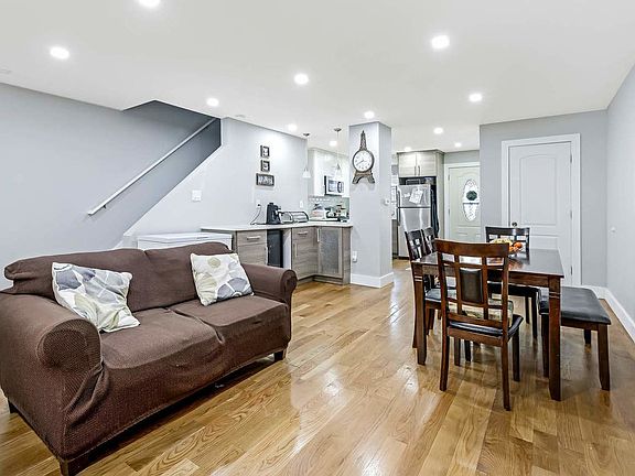 This beautifully updated three-bedroom, two-and-a-half-bathroom single-family home offers welcoming interiors, parking, and a lovely private yard with a shed in the heart of Brooklyn. Bright open-plan living spaces with hardwood floors and recessed lighting greet you on the main level of this spacious home. The kitchen features stainless steel appliances, including a gas range and built-in microwave, and ample counter space. The adjacent living/dining area begs to entertain with its long buffet counter featuring a wine refrigerator and beverage center. Outside, the patio and large grassy lawn provide the perfect space for lounging and play areas. A powder room and coat closet complete the lower level. Above, three spacious bedrooms surround a modern bathroom with floor-to-ceiling tile and a large tub/shower. In the fully finished basement, enjoy a flexible footprint ideal as a family room, home gym, private office, or storage area, complete with a second full bathroom with a shower and a laundry room. This home's driveway provides private parking, adding the ultimate city convenience to this Brooklyn starter home. Located near the border of Crown Heights and Brownsville, this tree-lined street is surrounded by great parks and recreation, like Betsy Head Park, currently undergoing a major renovation. Local shops, restaurants, and services line the nearby neighborhood. This location offers excellent transit options, including excellent bus service, the 2/3/4 train two blocks away, and A/C trains within a mile.