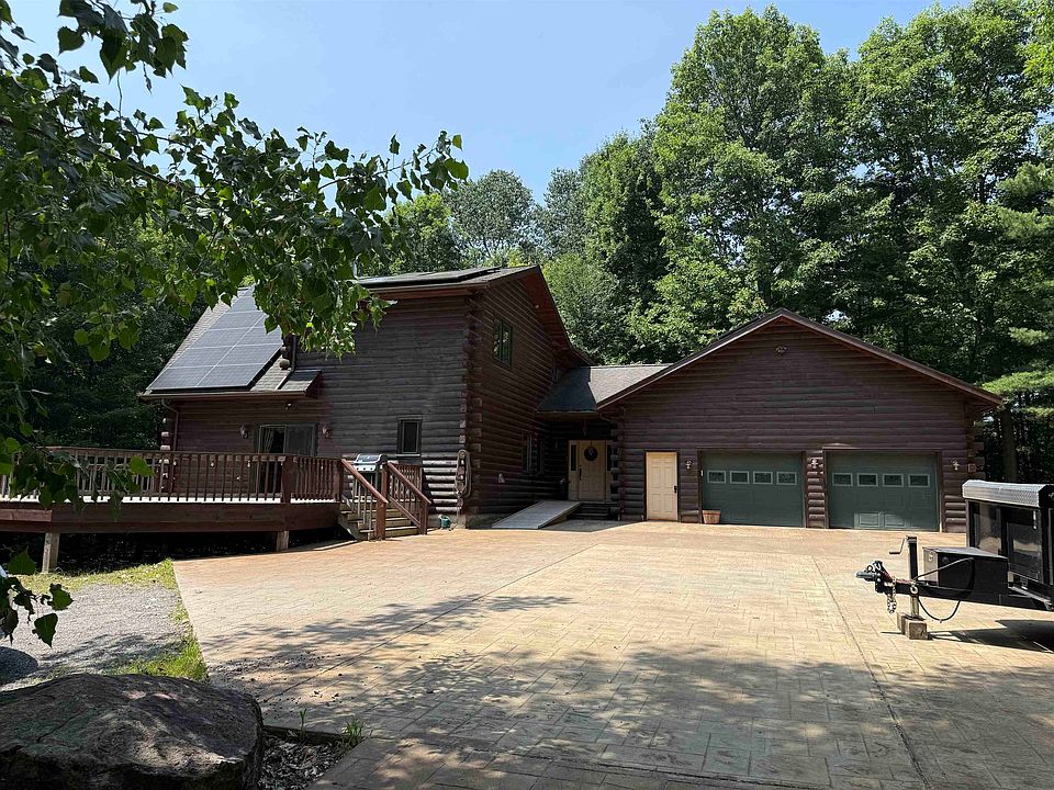 WELCOME TO YOUR NEW OASIS AT 192 LENNY ROAD! This beautiful 2102 ft.² Log home has 5 bedrooms 2.5 bathrooms, lots of natural light, a spacious deck, a covered balcony, a stamped concrete section of driveway in front of the attached two car garage all situated on 12.3 acres with trails and the property borders the Stone Valley Trail. This home is located close to Potsdam, Parishville, Colton, and Canton. As you Walk up onto the front, spacious deck And enter the home, you will see the beautiful open concept living room with a cathedral ceiling and windows from the floor to the ceiling. They’re beautiful wooden floors throughout the home. In the living room, you will also see a wood stove with a triple wall chimney that has been reinforced in the basement for added strength so you can finish that off with whatever you you’d like all the way to the ceiling. Then you’ll enter the gorgeous kitchen with plenty of cabinets and counter space, a large island with five stools and stainless steel appliances that convey with the home. That room flows into the dining room with a good space for gatherings. That the dining room you will find the foyer area and front door with a large closet and the door that leads to the attached garage. You also see the Pantry area that could also be a main floor, laundry room. Then you will see the beautiful half bathroom. Off the living room you will find the primary bedroom with a large walk-in closet and a primary bathroom with double vanity, a shower and separate bathtub. Also, after living room, you will find the door that leads to the covered balcony that overlooks the lovely property. Upstairs, you will see the spacious loft area With room for a second living room or an office space. Upstairs, you will also see the two bedrooms and another full bathroom. In the basement, you will find another area that is finished for a living room or A playroom with glass doors that Bring you to the yard. You will also find two bedrooms and a finished office space. Also, in the basement, you will see the boiler room, the laundry area with storage and another room that is ready for you to add a bathroom! This home has so much to offer, schedule your showing today!