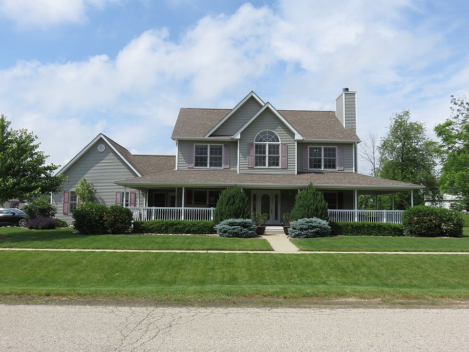 Great curb appeal! Oversized corner lot! Awesome wraparound covered front porch great for summer nights! Family room opens to the kitchen! Bright eat-in kitchen with extended height oak cabinetry, breakfast bar, granite countertops and eating area with French doors to the large custom deck! Separate formal dining room with lots of natural light! Den/living room with wood burning fireplace with oak mantle and accent lighting! Spacious master bedroom with luxury garden bath with whirlpool tub and walk-in shower with seat and custom tile work! Gracious size secondary bedrooms! Loft with cathedral ceiling and recessed lighting! Convenient 1st floor laundry! Basement awaits your finishing touches! Heated garage! Shed!